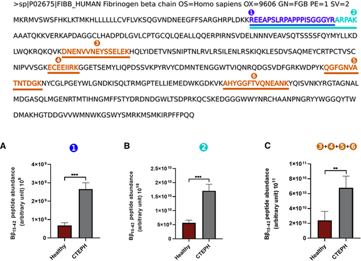 Fibrinogen beta (FIBB) peptides in plasma of patients with chronic thromboembolic pulmonary hypertension (CTEPH) and healthy subjects © 2021 American Heart Association, IncObjective